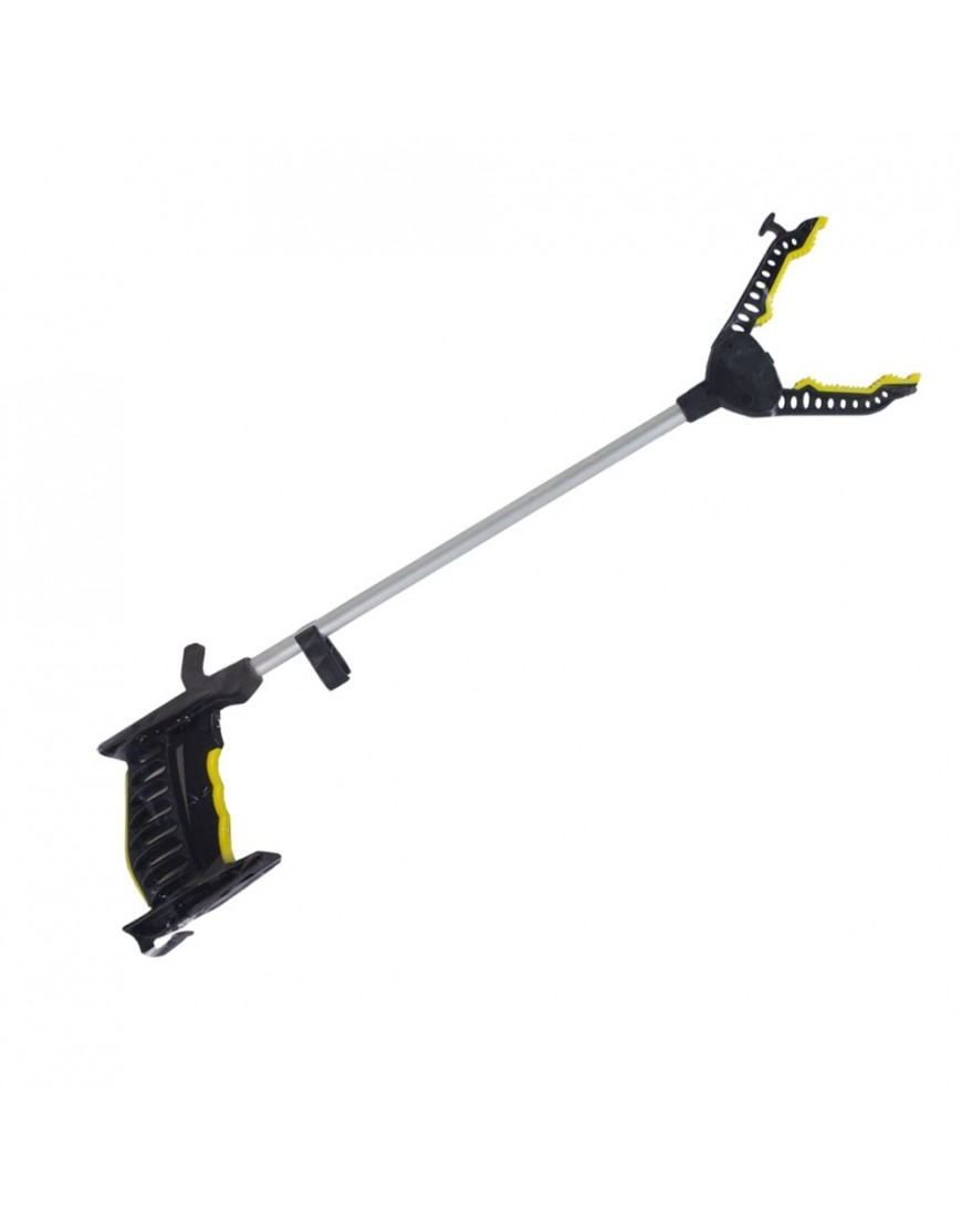 A pinça é constituída por um tubo em alumínio anodizado e manípulo em material plástico. As pegas são constituídas em borracha antiderrapante que evita a queda dos objetos e contém ainda um íman para agarrar objetos metálicos pequenos.
