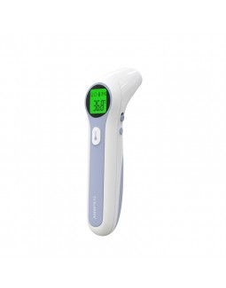 Termómetro indicado para uso profissional ou domiciliário. Adequado para medição à distância em adultos e crianças. Ecrã ilumina-se para facilitar a leitura da temperatura. Se o ecrã ficar verde indica que não tem febre, se ficar vermelho indica a presença de febre. Permite medição na testa e ouvido.